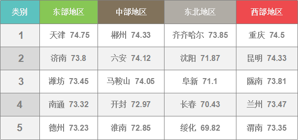全國(guó)城市按區(qū)域改革熱度指數(shù)TOP 5
