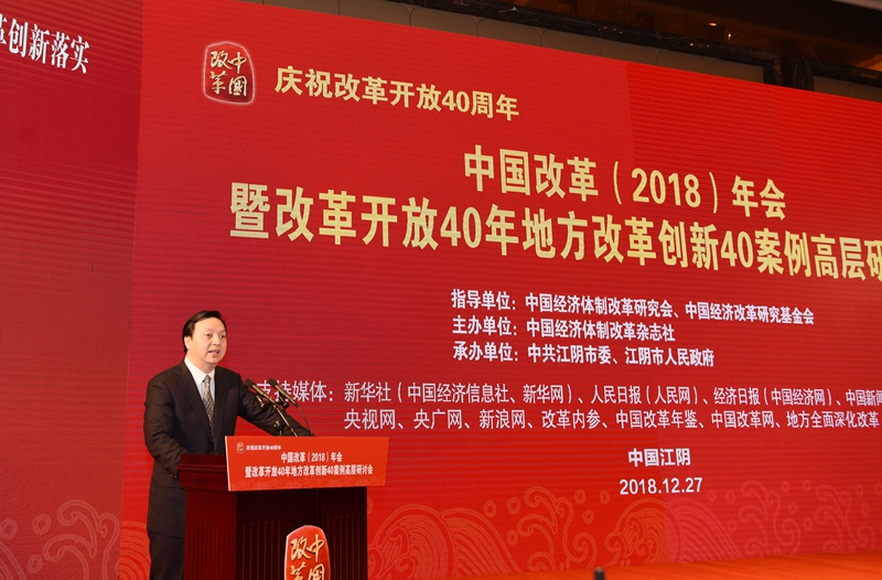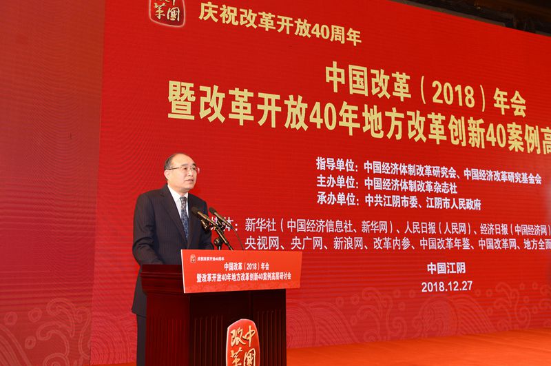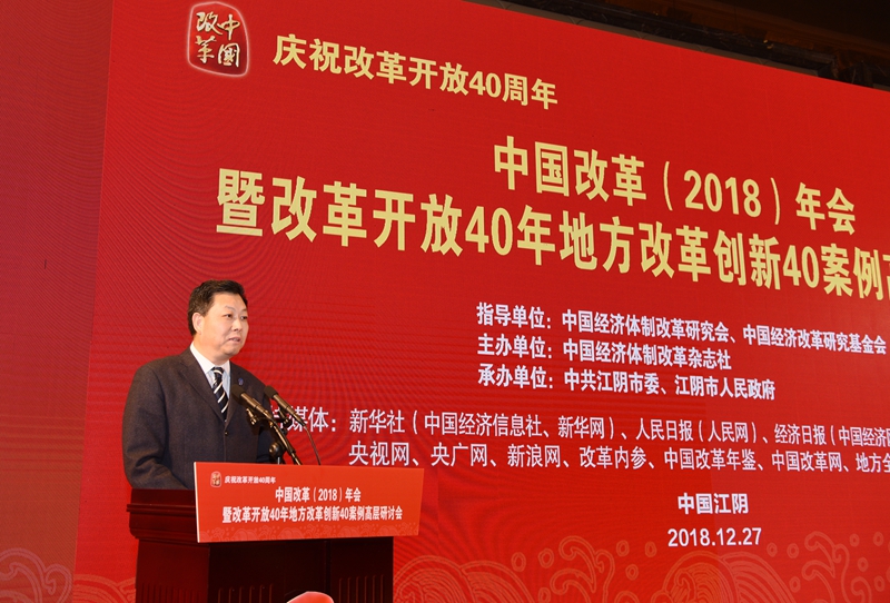 2018年12月27日,由中國經(jīng)濟(jì)體制改革研究會、中國經(jīng)濟(jì)改革研究基金會指導(dǎo),中國經(jīng)濟(jì)體制改革雜志社主辦,中共江陰市委、江陰市人民政府承辦的“慶祝改革開放40周年——中國改革(2018)年會暨改革開放40年地方改革創(chuàng)新40案例高層研討會”在江蘇省江陰市召開。