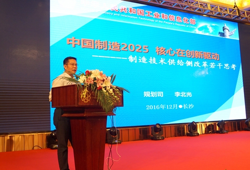 工信部規(guī)劃司副司長李北光演講的題目是,《中國制造2025核心在于創(chuàng)新驅(qū)動》。李北光指出,2010年我國制造業(yè)增加值達(dá)到1.9萬億美元,首次超過美國,成為全球第一制造大國,保持至今。但是我們大而不強,主要問題是創(chuàng)新能力不強。創(chuàng)新背后迫切需要全面深化科技體制、工業(yè)體制和整個經(jīng)濟體制、社會體制改革。在最新一輪的工業(yè)革命背景下,中國制造能不能化挑戰(zhàn)為機遇,成為我們必須思考和必須面對的問題。2015年5月,國務(wù)院發(fā)布《中國制造2025》,提出在保持中國制造規(guī)模優(yōu)勢的基礎(chǔ)上,保持中國制造完整的生產(chǎn)體系、制造體系基礎(chǔ)上,以智能制造為主攻方向,推動中國制造全方位智能化轉(zhuǎn)型,用信息技術(shù)改造傳統(tǒng)企業(yè),推動中國制造由中低端邁向中高端,由大轉(zhuǎn)強。