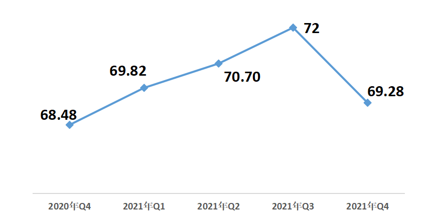 1月29日,中國經(jīng)濟體制改革研究會在京發(fā)布《2021年第四季度改革熱度第三方評估報告》。報告顯示,2021年第四季度改革熱度指數(shù)為69.28,同比增長0.8;與上一季度相比,減少2.72,降幅3.78%。
