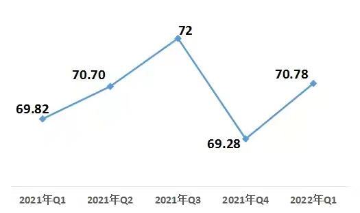 4月20日,中國經(jīng)濟體制改革研究會在京發(fā)布《2022年第一季度改革熱度第三方評估報告》。報告顯示,2022年第一季度改革熱度指數(shù)為70.78,比上一季度增加1.5,增幅2.16%,扭轉(zhuǎn)了2021年四季度的下降態(tài)勢,略高于去年(2021年)一季度水平。