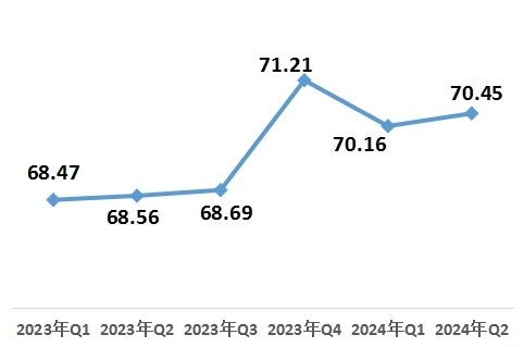 7月23日,中國經(jīng)濟(jì)體制改革研究會在京發(fā)布《2024年第二季度改革熱度第三方評估報告》。報告顯示,2024年第二季度改革熱度指數(shù)為70.45,比上一季度上升0.29,環(huán)比增長0.42%;同比增長2.75%。