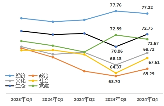 中國(guó)經(jīng)濟(jì)體制改革研究會(huì)“改革熱度指數(shù)”課題組認(rèn)為,面對(duì)當(dāng)前外部環(huán)境變化帶來的不利影響加深,我國(guó)經(jīng)濟(jì)運(yùn)行仍面臨不少困難和挑戰(zhàn),但我國(guó)經(jīng)濟(jì)基礎(chǔ)穩(wěn)、優(yōu)勢(shì)多、韌性強(qiáng)、潛能大,長(zhǎng)期向好的支撐條件和基本趨勢(shì)沒有變。從改革熱度指數(shù)看,政治、文化、社會(huì)、生態(tài)領(lǐng)域熱度值提升,經(jīng)濟(jì)、黨建領(lǐng)域熱度值和宣傳度熱度值略有下降,四季度改革熱度指數(shù)依然保持高位運(yùn)行。2025年是貫徹黨的二十屆三中全會(huì)精神的重要一年,隨著各項(xiàng)改革逐步推進(jìn)、一攬子增量政策落地見效,必將為高質(zhì)量發(fā)展和推進(jìn)中國(guó)式現(xiàn)代化提供更有力的支撐。