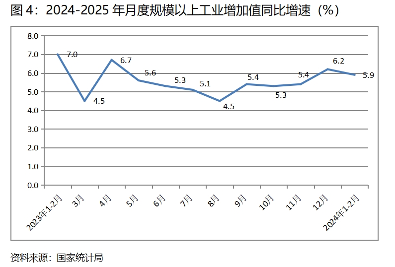 (一)工業(yè)增速由升轉(zhuǎn)落。1-2月份,規(guī)模以上工業(yè)增加值同比增長(zhǎng)5.9%,比上年12月份增長(zhǎng)6.2%回落了0.3個(gè)百分點(diǎn),上年12月份比上年11月份回升了0.8個(gè)百分點(diǎn)。1-2月份工業(yè)增速出現(xiàn)回落,有上年同期高基數(shù)的因素,如按兩年平均增速計(jì)算,增速為6.4%,說(shuō)明規(guī)模以上工業(yè)出現(xiàn)了積極的回升勢(shì)頭。值得關(guān)注的是,在全部規(guī)模以上工業(yè)增速回落的同時(shí),規(guī)模以上制造業(yè)和私營(yíng)企業(yè)增速卻保持了回升,1-2月份規(guī)模以上制造業(yè)同比增速比上年12月份回升0.5個(gè)百分點(diǎn),私營(yíng)企業(yè)回升1.4個(gè)百分點(diǎn)。