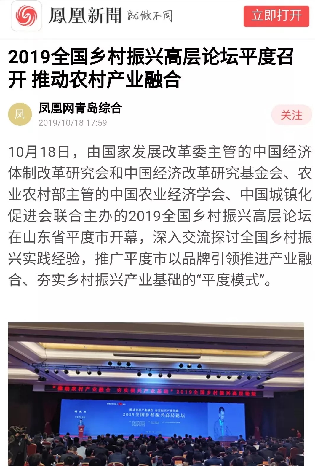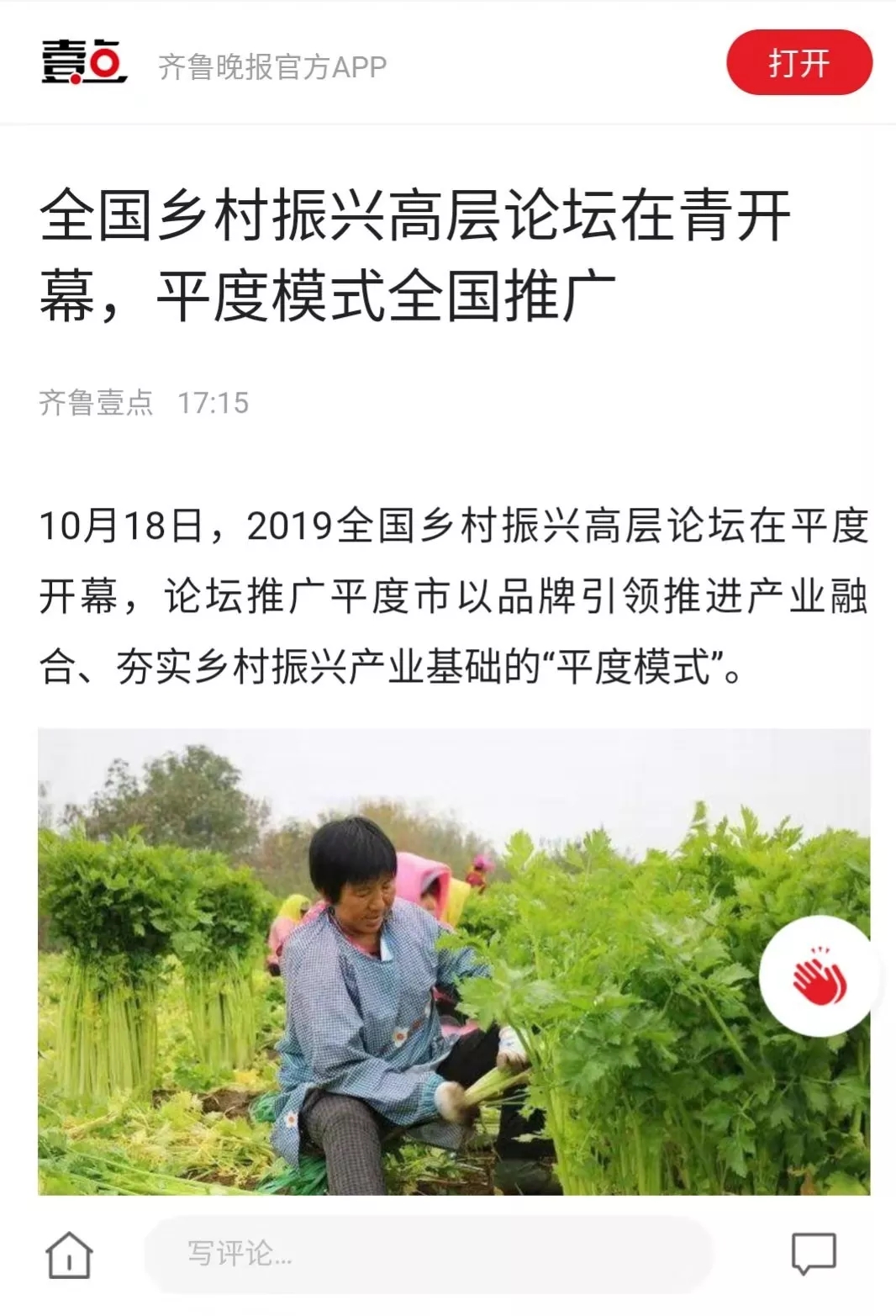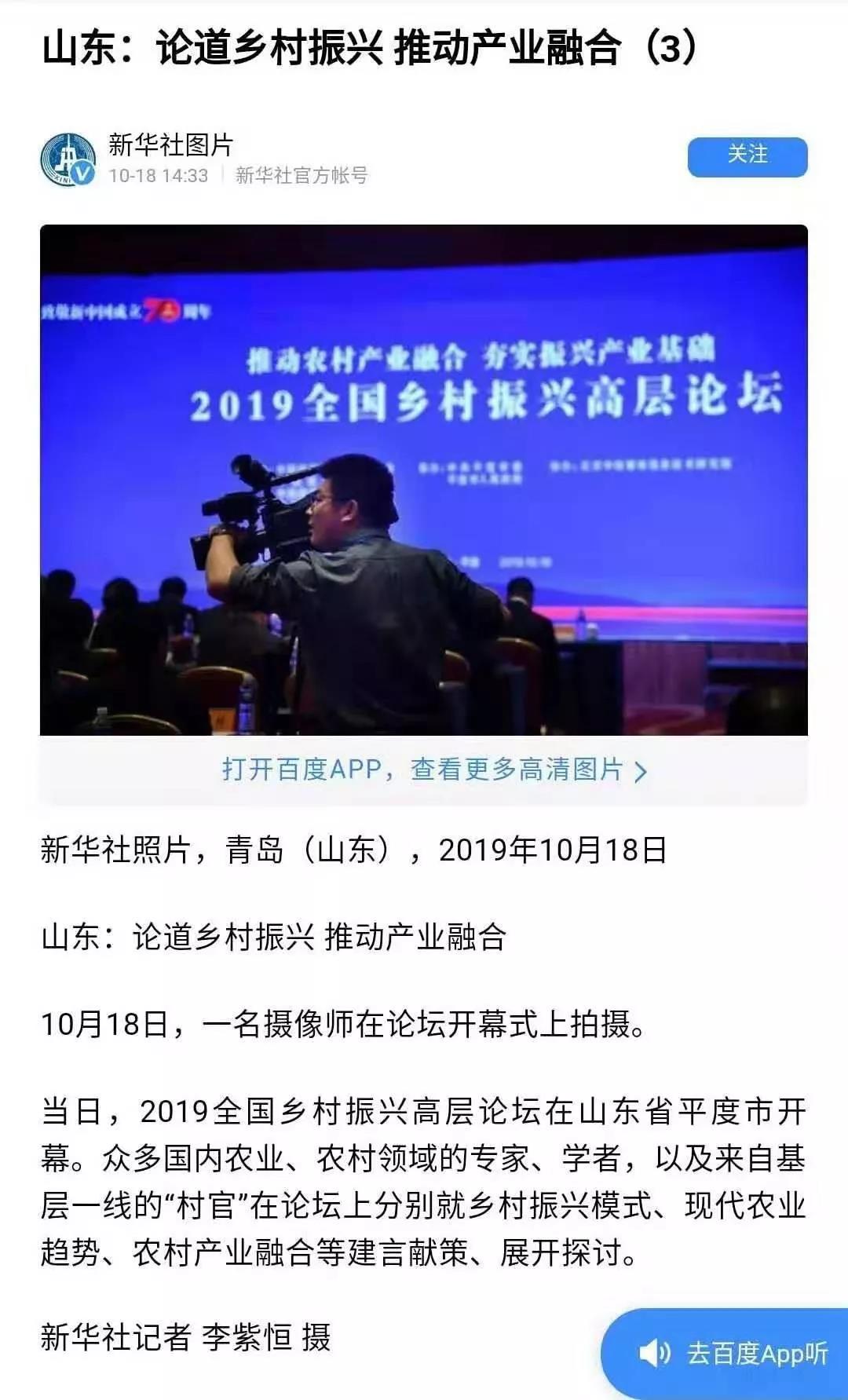 這場在平度舉行的國家級高層論壇受到各級新聞媒體聚焦關(guān)注,中央廣播電視總臺、人民日報、新華社、經(jīng)濟(jì)日報、農(nóng)民日報、中國經(jīng)濟(jì)時報、山東廣播電視臺、大眾日報、青島廣播電視臺、青島日報等20余家媒體記者到現(xiàn)場采訪報道。10月18日上午,青島廣播電視臺藍(lán)睛客戶端現(xiàn)場直播論壇盛況,在線觀看已突破7萬人次。目前,新華社、人民網(wǎng)、鳳凰網(wǎng)、青島廣播電視臺、青島日報、齊魯晚報、青島早報、青島晚報、半島都市報、商周刊、大眾網(wǎng)、中國山東網(wǎng)、青島新聞網(wǎng)等10余家媒體第一時間已刊發(fā)相關(guān)報道。