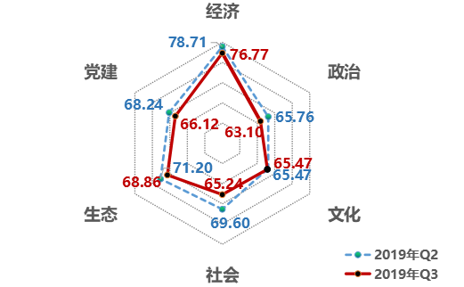 1、從領(lǐng)域來(lái)看,文化領(lǐng)域改革熱度值保持穩(wěn)定,并首次超過(guò)社會(huì)領(lǐng)域。第三季度,經(jīng)濟(jì)領(lǐng)域得分76.77,生態(tài)領(lǐng)域得分68.86,黨建領(lǐng)域得分66.12,文化領(lǐng)域得分65.47,社會(huì)領(lǐng)域得分65.24,政治領(lǐng)域得分63.10。